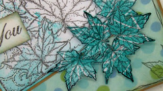I stamped, embossed and fussy cut them and added them to the corners as a pile of falling leaves.